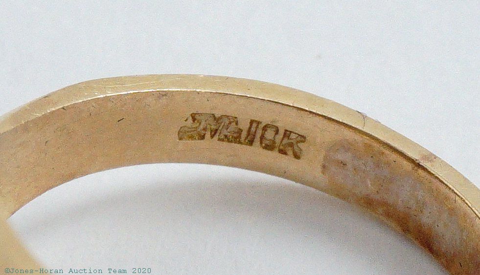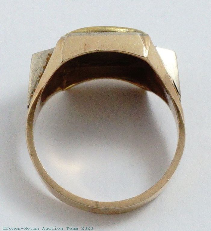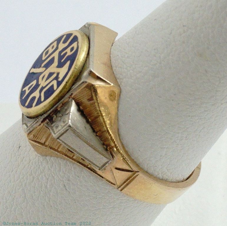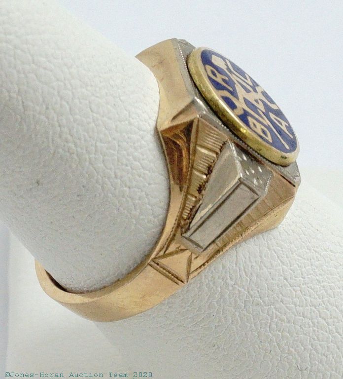 Brotherhood of Railway Carmen of America (B of RCA) signet ring in 10K white and yellow gold with a wrench, hammer and blue enamel accents, size 6.5, truly a must have for the railroad watch collector especially for those interested in Brotherhood signed watches. Gross weight 3.4 dwt (5.3 g).