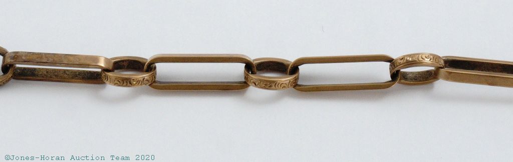 Chain shows light wear, connecting links have worn thin over time however the chain is still structurally sound, missing fob clasp.