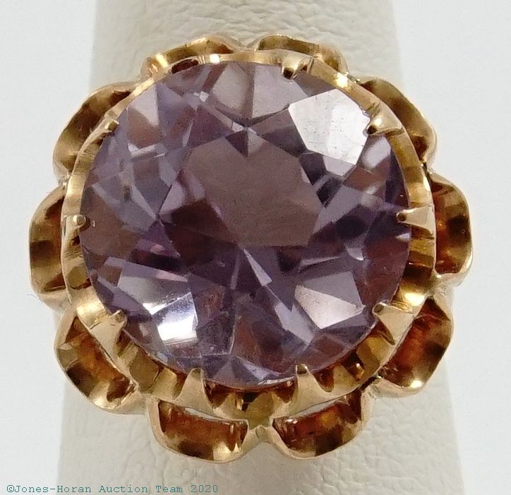 Soft pink amethyst and 14K gold antique Victorian ring with outer shank hallmarks, round cut center weighs approximately 4.4 ct, size 6.5, truly an exquisite ring from a long gone era that has survived the many years without being sent to the scrapper. Gross weight 5.3 dwt (8.3 g).