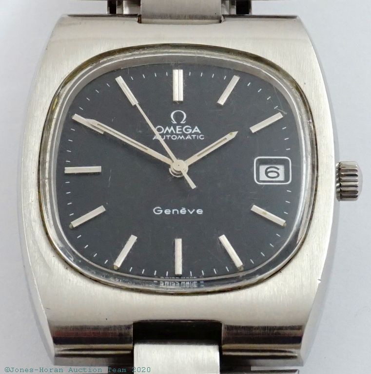 WW - Omega, Genève, ref 168.0191, automatic, 36mm x 43mm to lug tips, original stainless steel screw back case with integrated bracelet signed Omega, ref 1233, original black dial with applied silver indices, date aperture at 3, 23J cal 1012, s#37761776, triple signed.
